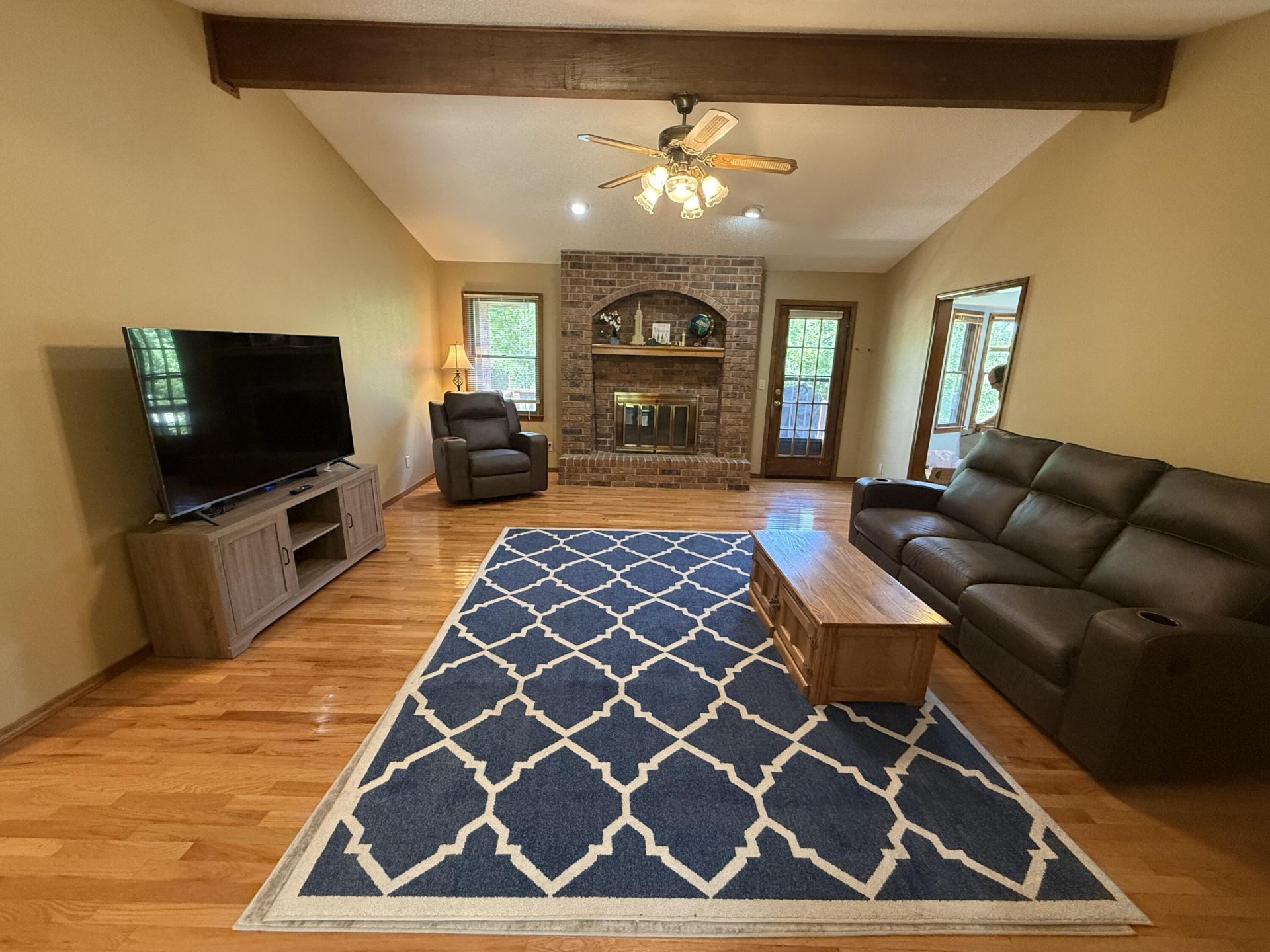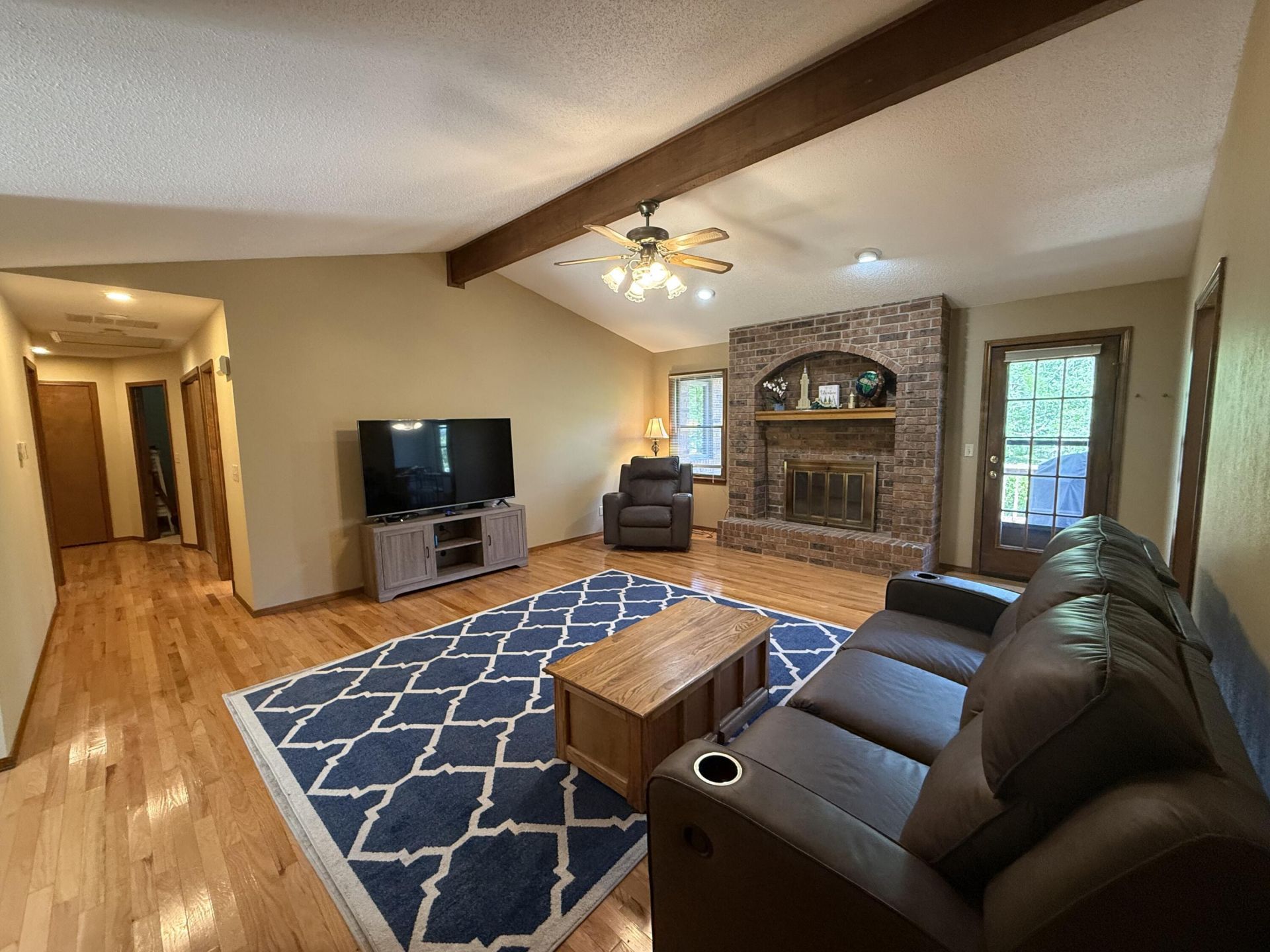 About 1,760 sq. ft. (per assessor) in this well kept brick home near Cox South Hospital and Kickapoo High School. Great room has cathedral ceiling and wood burning fireplace. Hardwood floors in great room, formal dining room and hallway. Kitchen has stainless steel range, built-in microwave, and eating area. Master bedroom has 2 closets. Master bath has separate tub and step-in shower. Back yard is fenced. Storage shed. New roof shingles in January, 2023.